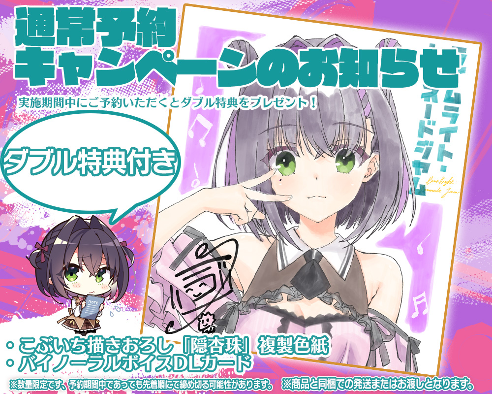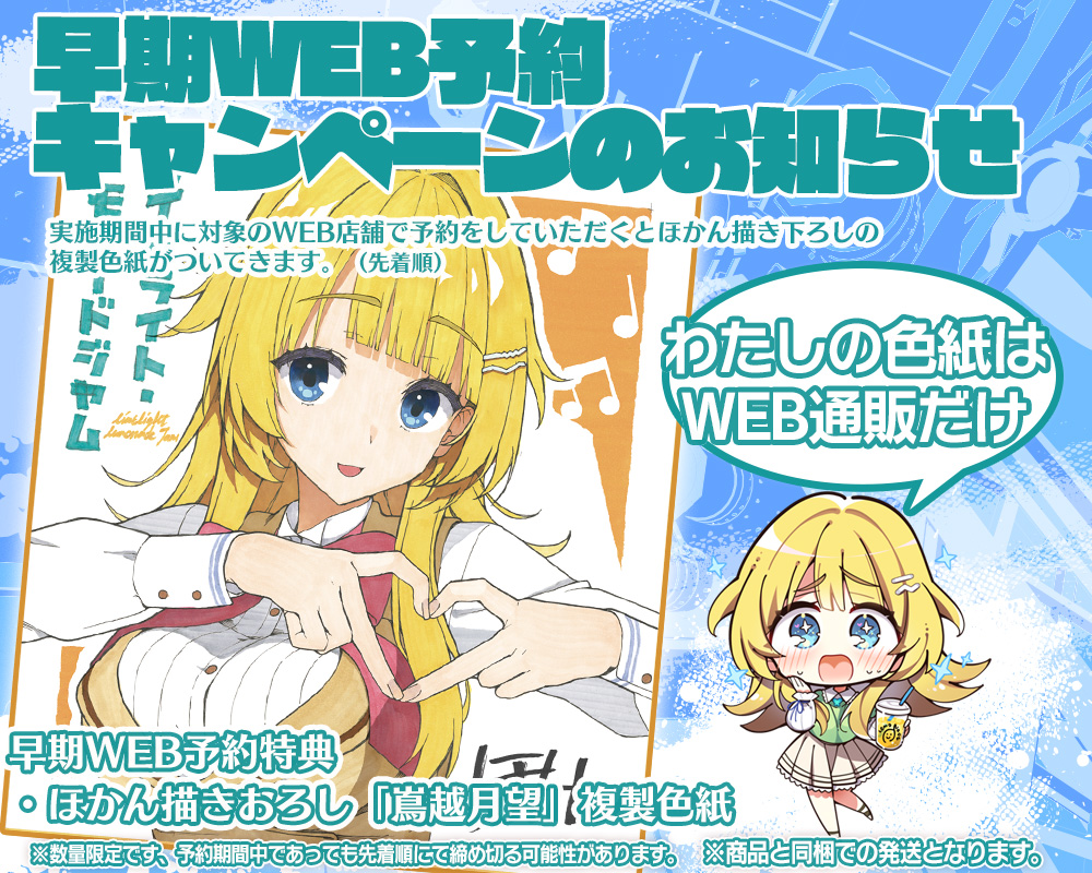 実施期間中にWEB店舗で予約をしていただくとほかん描き下ろしの『嶌越月望』複製色紙をプレゼント致します!※商品と同梱での発送となります